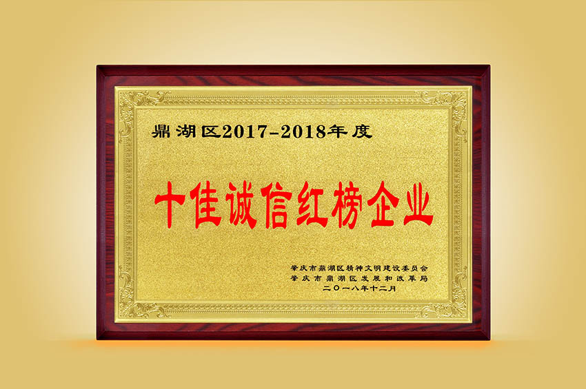 2016年-2018年度“誠信紅榜”企業牌匾